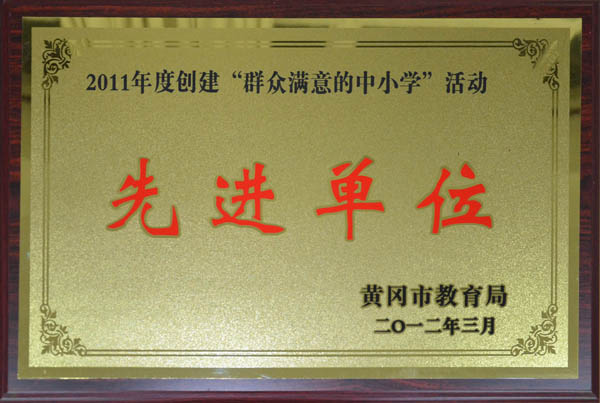 我校荣获黄冈市2011年度“创建群众满意的中小学”活动先进单位